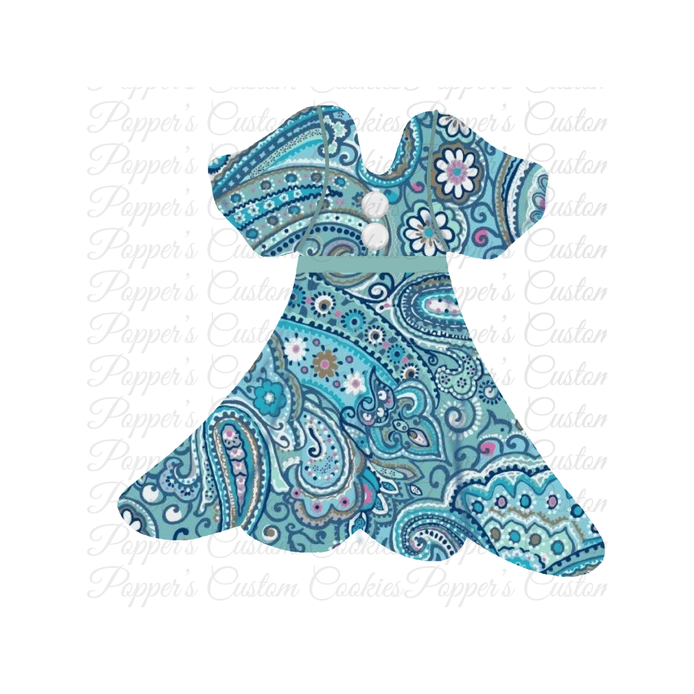 This listing includes: One PNG file for Dress, Flair, Green Blue, Paisley, Belt Buttons. Corresponding cookie cutter available here. This is a digital download ONLY, no physical product will be shipped.